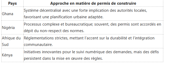 Chaque pays africain présente des leçons précieuses que vous pouvez tirer pour améliorer le système de permis de construire au Cameroun. Par exemple, le Ghana démontre l'efficacité d'un système décentralisé qui permet aux autorités locales d'adapter les réglementations aux réalités régionales. Cette approche réduit les délais d'approbation et facilite la collaboration avec les communautés.