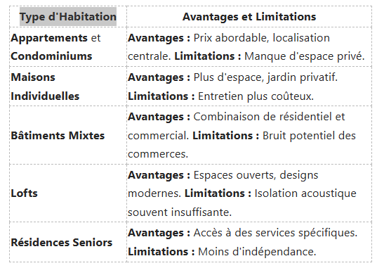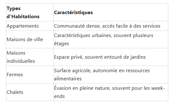 Types d'Habitations en Fonction de la Localisation