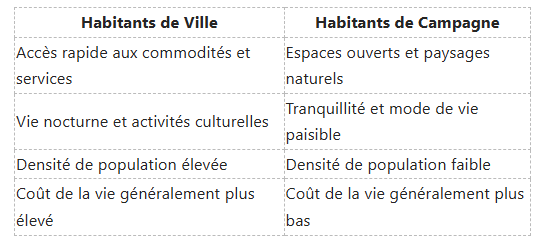 Comparaisons Entre Habitants de Ville et de Campagne