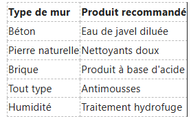 Après traitement, il est généralement conseillé de rincer avec de l’eau claire pour éliminer les résidus. N’oubliez pas que chaque type de mur nécessite des délais d’action spécifiques et que vous devez respecter ces temps pour obtenir les meilleurs résultats. Thou, un bon respect des techniques garantit non seulement un entretien optimal, mais aussi la pérennité de vos structures.