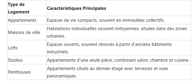 - La densité urbaine influence le type d'habitation, les grandes villes ayant plus d'appartements que de maisons individuelles.