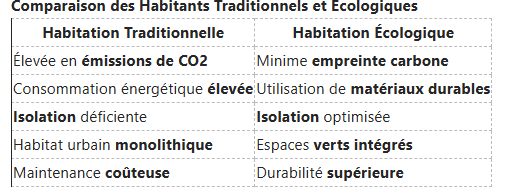 - Les habitats contemporains intègrent des éléments écologiques, comme les maisons en bois et les constructions passives.