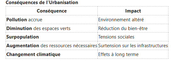 De plus, l'urbanisation forte compromet souvent l'accès aux espaces verts. Pour vous, cela signifie un manque d'espace de loisirs et de détente, avec des habitations souvent soumises à des conditions de vie moins saines. En adoptant des solutions telles que des éco-quartiers, il est possible de redresser cette tendance et de promouvoir une urbanisation durable.