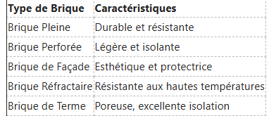 - Choisir le type de mur en maçonnerie dépend des besoins structurels et esthétiques du projet.