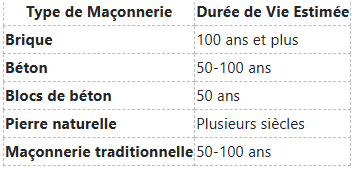Q: Quelle est la durée de vie moyenne d'un mur en maçonnerie ?