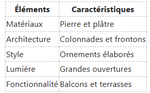 Le style baroque se caractérise par une opulence inégalée, se manifestant par des façades ornées et des dômes majestueux. Vous pouvez observer une utilisation extensive de la symétrie et de la proportion, souvent agrémentée de sculptures en relief et de motifs floraux. Les matériaux tels que la pierre, le marbre et l'oro sont couramment utilisés pour créer un impact visuel fort. Des édifices comme le Palais de Versailles illustrent parfaitement cette richesse architecturale.